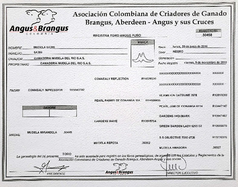 PADRE: CONNEALY IMPRESSION MADRE: MUDELA MIRANDELA RAZA: ANGUS NEGRO