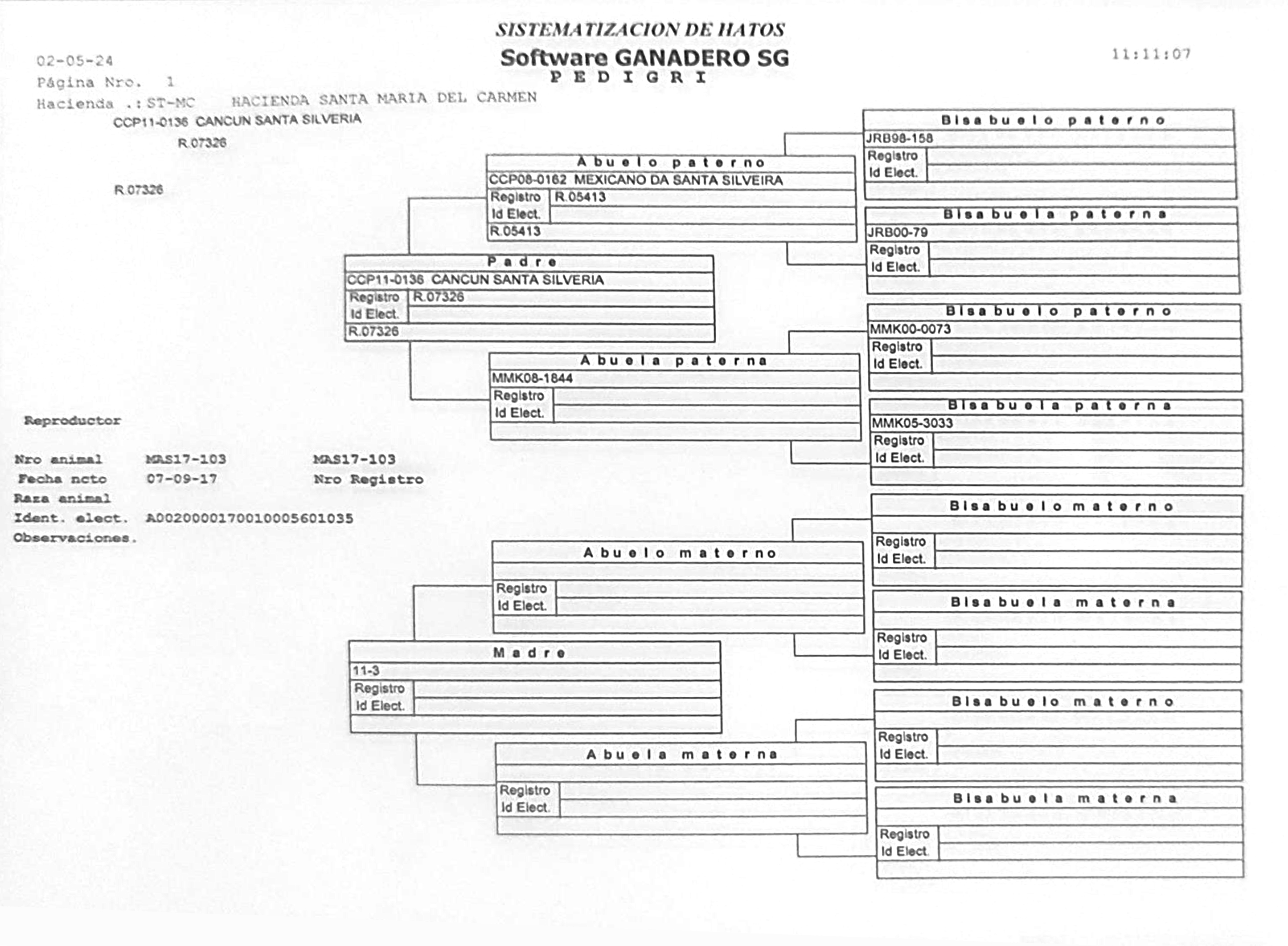 NÚMERO: 17-103 FECHA DE NACIMIENTO: 07/09/2017 TIPO: CARNE REGISTRO: 110136