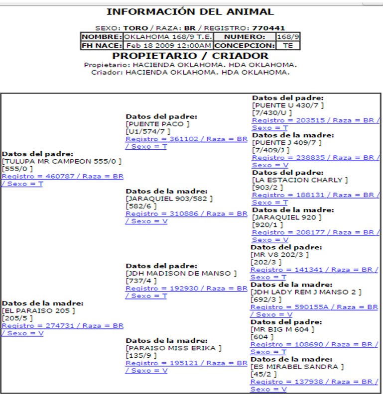 PADRE: TULUA MR CAMPEON 555/0 MADRE: EL PARAISO 205 RAZA: BRAHMAN GRIS