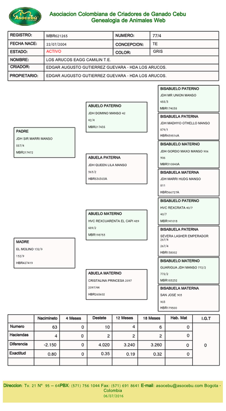 PADRE: JDH SIR MARRI MANSO MADRE: EL MOLINO 132/9 RAZA: BRAHMAN GRIS