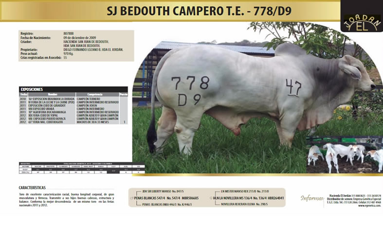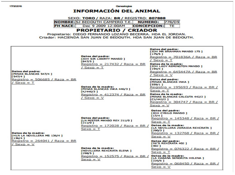 PADRE: PEÑAS BLANCAS 547/4 MADRE: HLN LA NOVILLERA MS 136/4RAZA: BRAHMAN GRIS