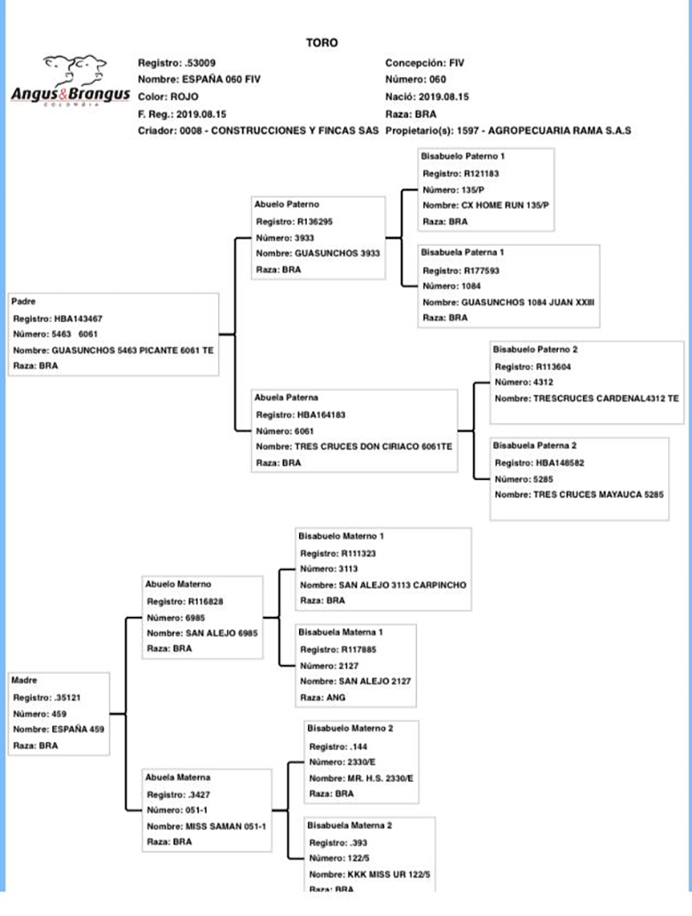 NÚMERO: 060  FECHA DE NACIMIENTO: 15/08/2019    REGISTRO: 53009 RAZA: BRANGUS ROJO