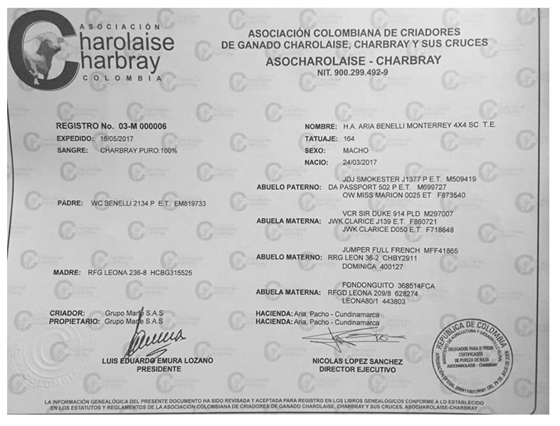 PADRE: WC BENELLI 2134 P ET MADRE: RFG LEONA 236-8 RAZA: CHARBRAY