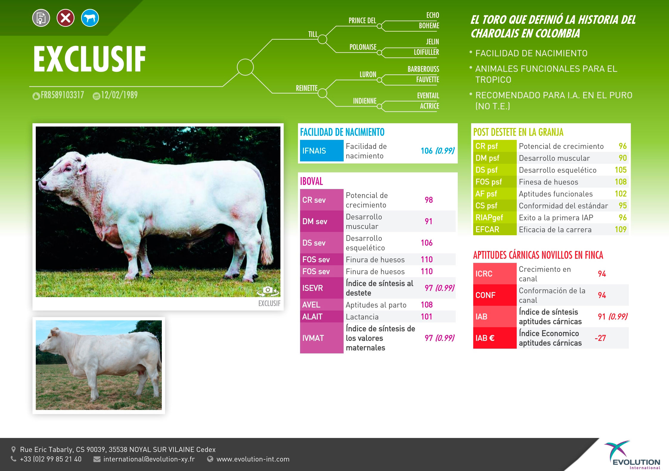 PADRE: TILL ABUELO MATERNO: LURON RAZA: CHAROLAIS RECOMENDCIÓN: INSEMINACION