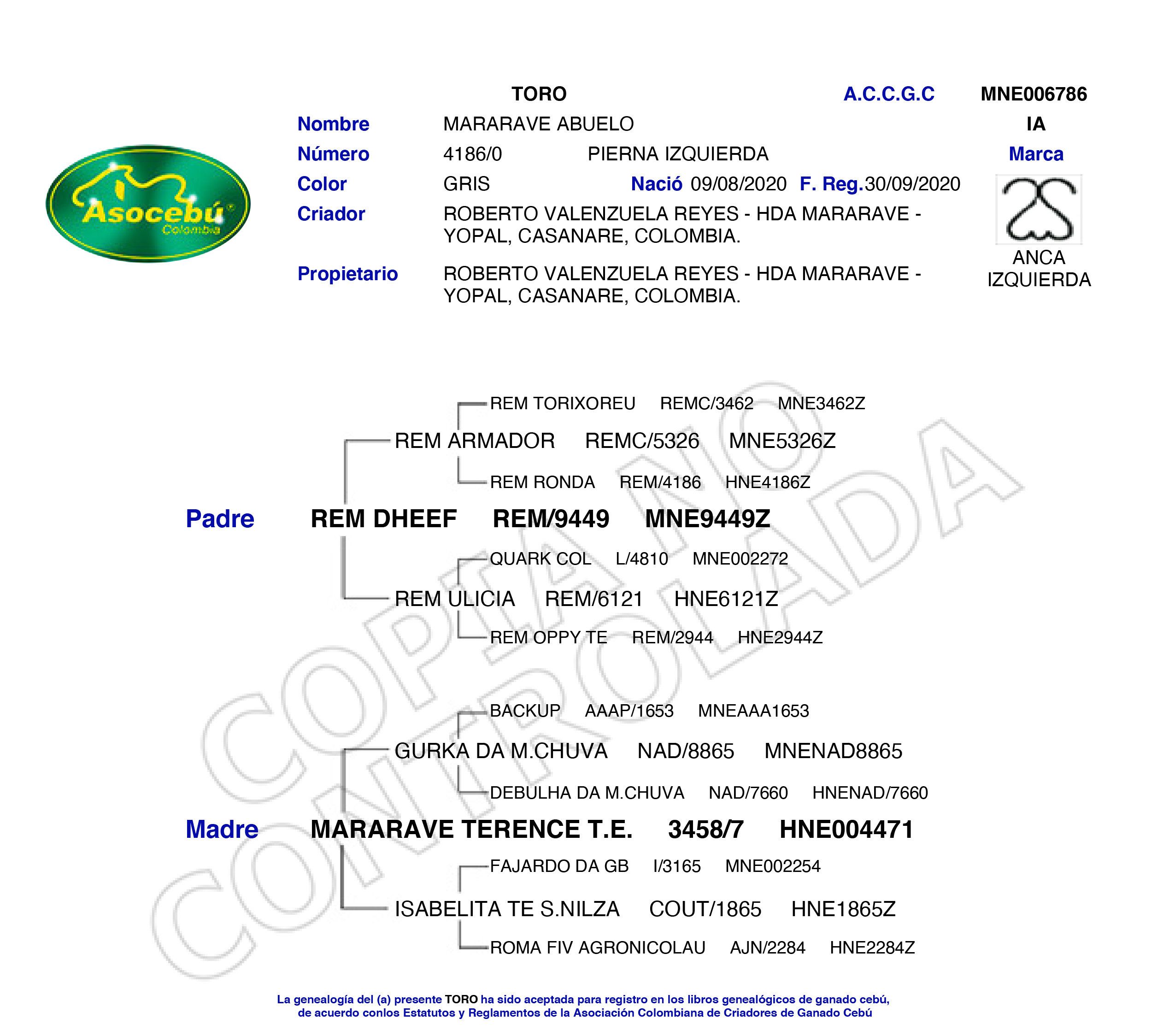 PADRE: REM DHEEF MADRE:MARARAVE TERENCE T.E.RAZA: NELORE