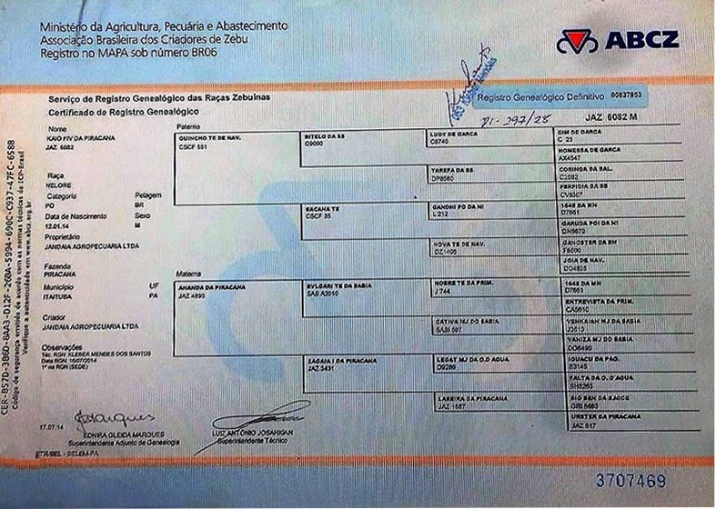 PADRE: OUNCHO TE DE NAV. MADRE: ANANDA DE PICARANARAZA: NELORE