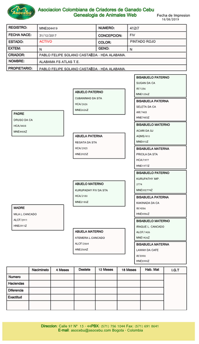 NÚMERO: 412/7 FECHA DE NACIMIENTO: 31/12/2017 TIPO: CARNE REGISTRO: MNE004419