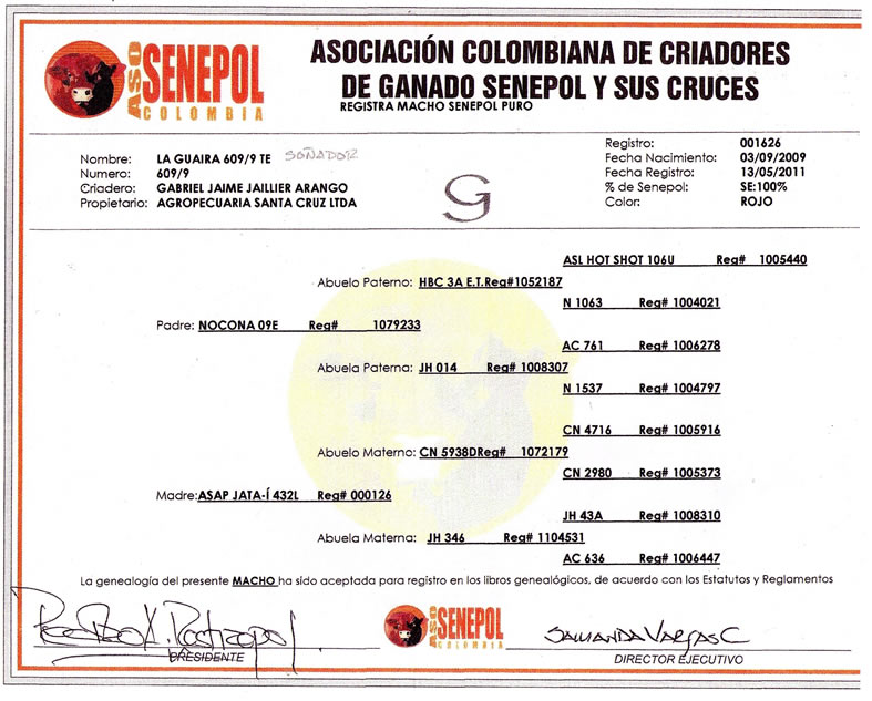 PADRE: NOCONA 09E MADRE: ASAP JATA-I 432L RAZA: SENEPOL