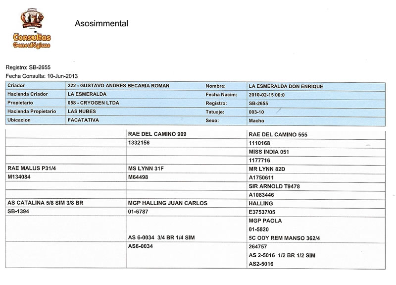NÚMERO:003-10 FECHA DE NACIMIENTO: 02/15/2010 TIPO: CARNE REGISTRO: SB-2655