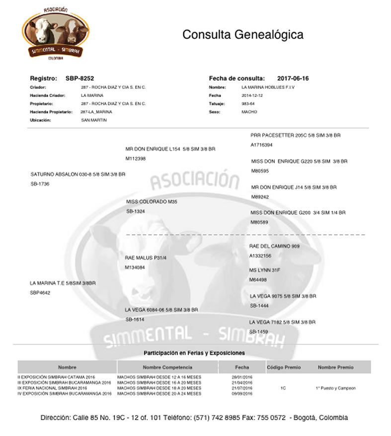 PADRE: SATURNO ABSALON 030-8 MADRE: LA MARINA TE RAZA: SIMBRAH