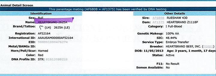 PADRE: RUESHAW 430 MADRE: HEARTBRAND Z1118P RAZA: WAGYU - AKAUSHI