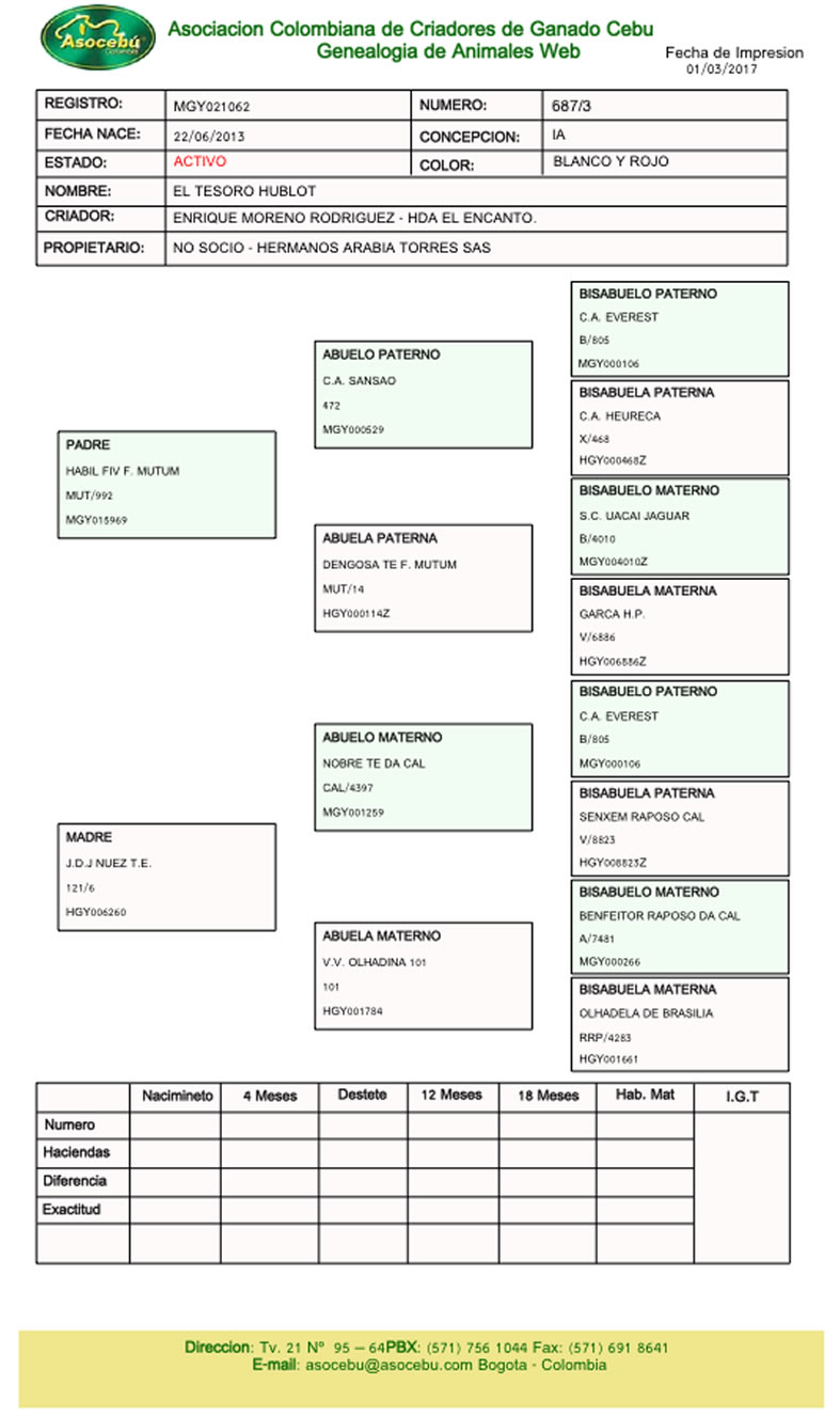 NÚMERO: FECHA DE NACIMIENTO: 22/06/2013 TIPO: LECHE REGISTRO: MGY021062