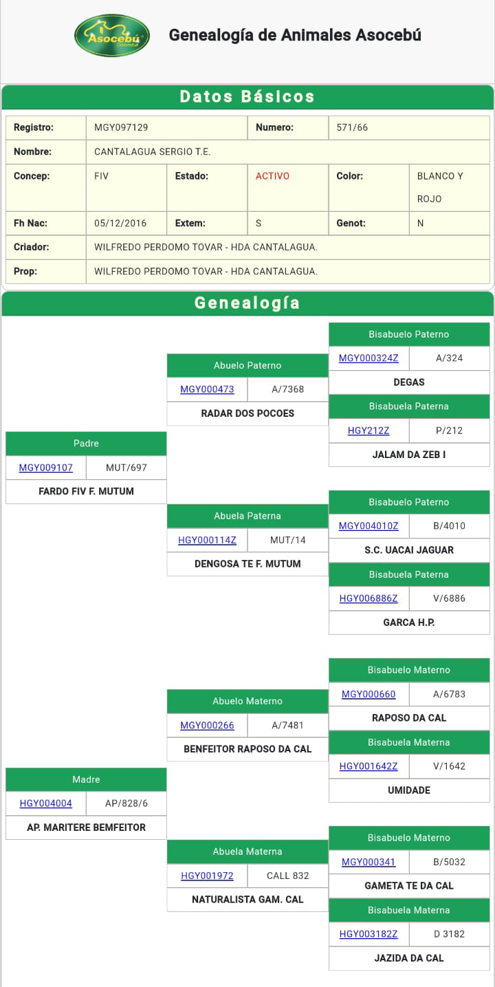 NÚMERO: 571/66 FECHA DE NACIMIENTO: 05/12/2016  TIPO: LECHE REGISTRO: MGY097129