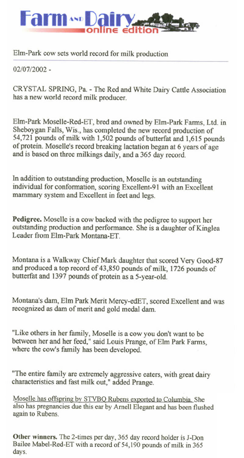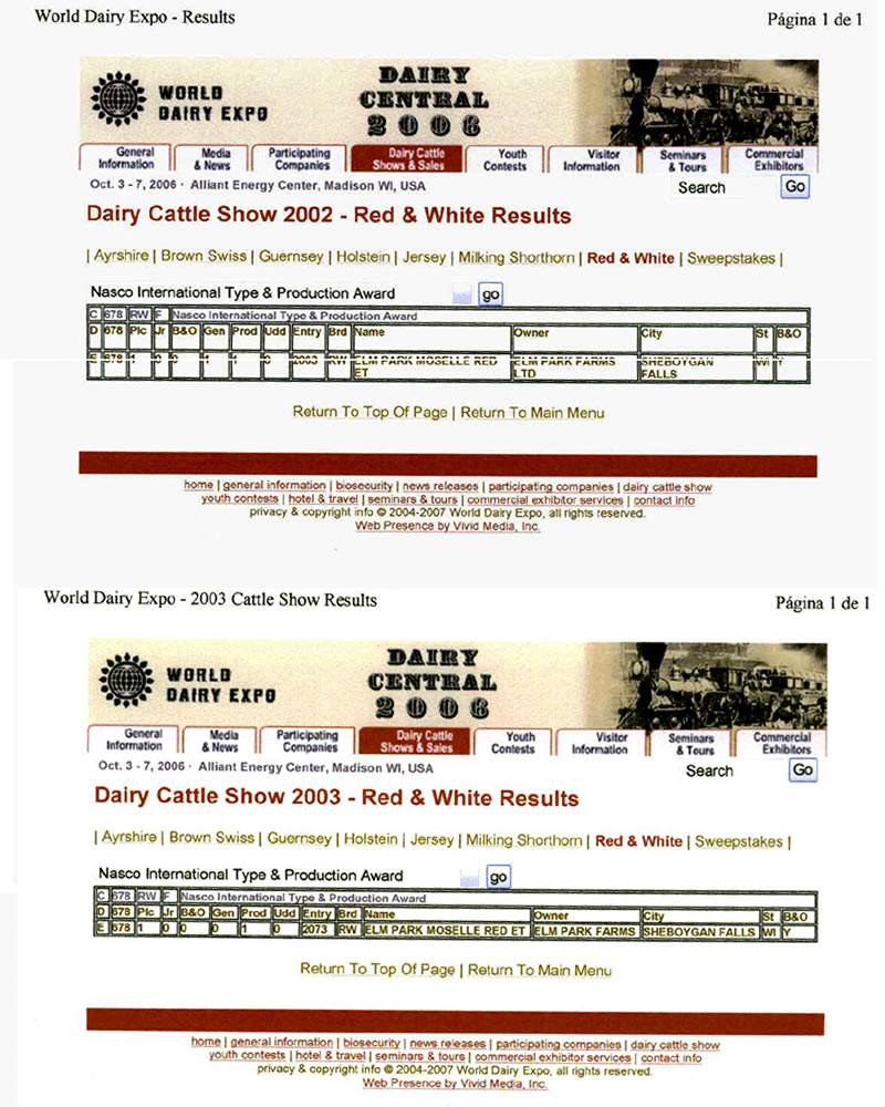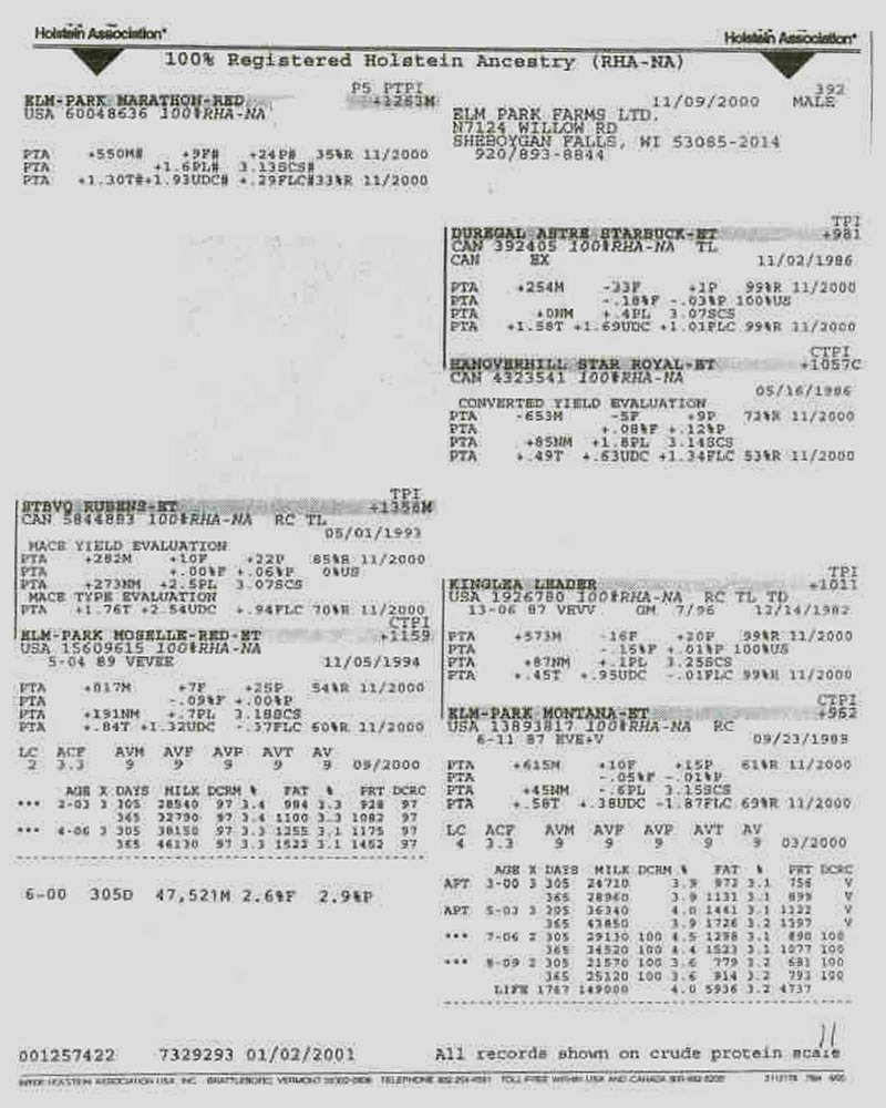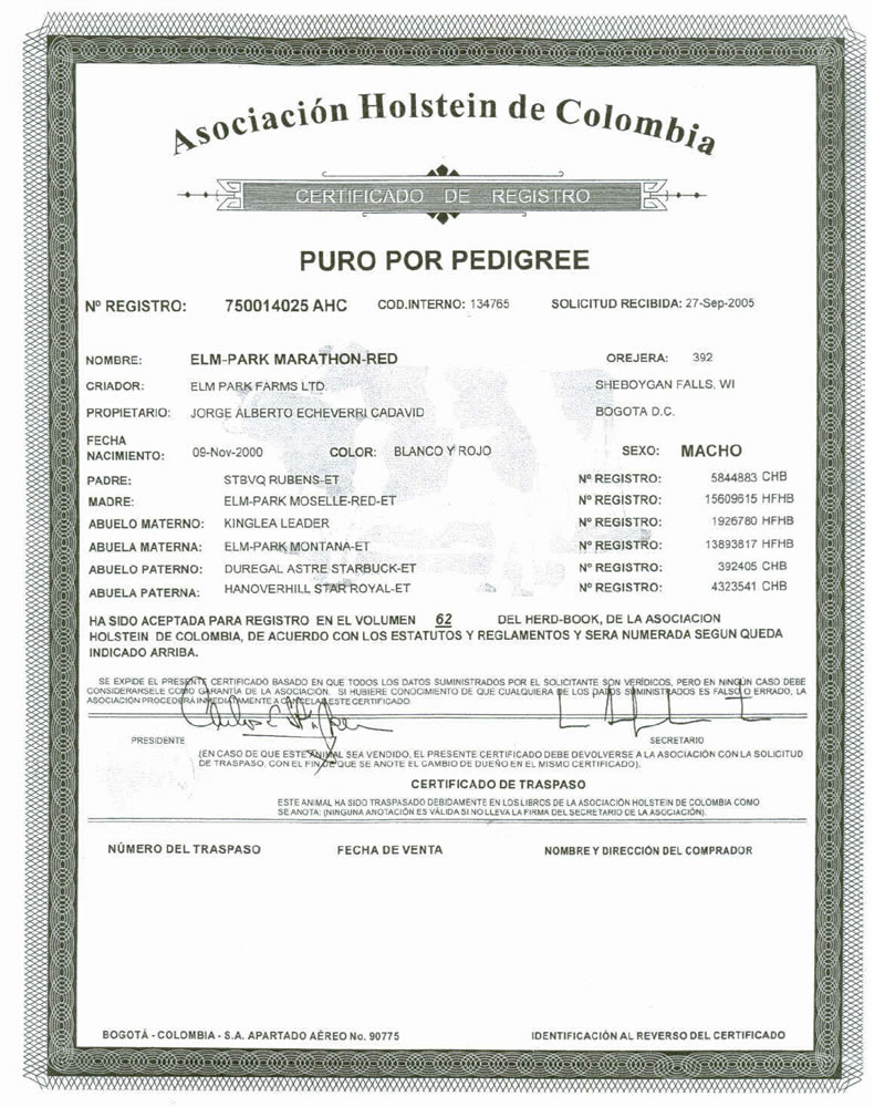 PADRE: STBVQ RUBENS ET MADRE: ELM PARK MOSELLE RED ET RAZA: HOLSTEIN ROJA