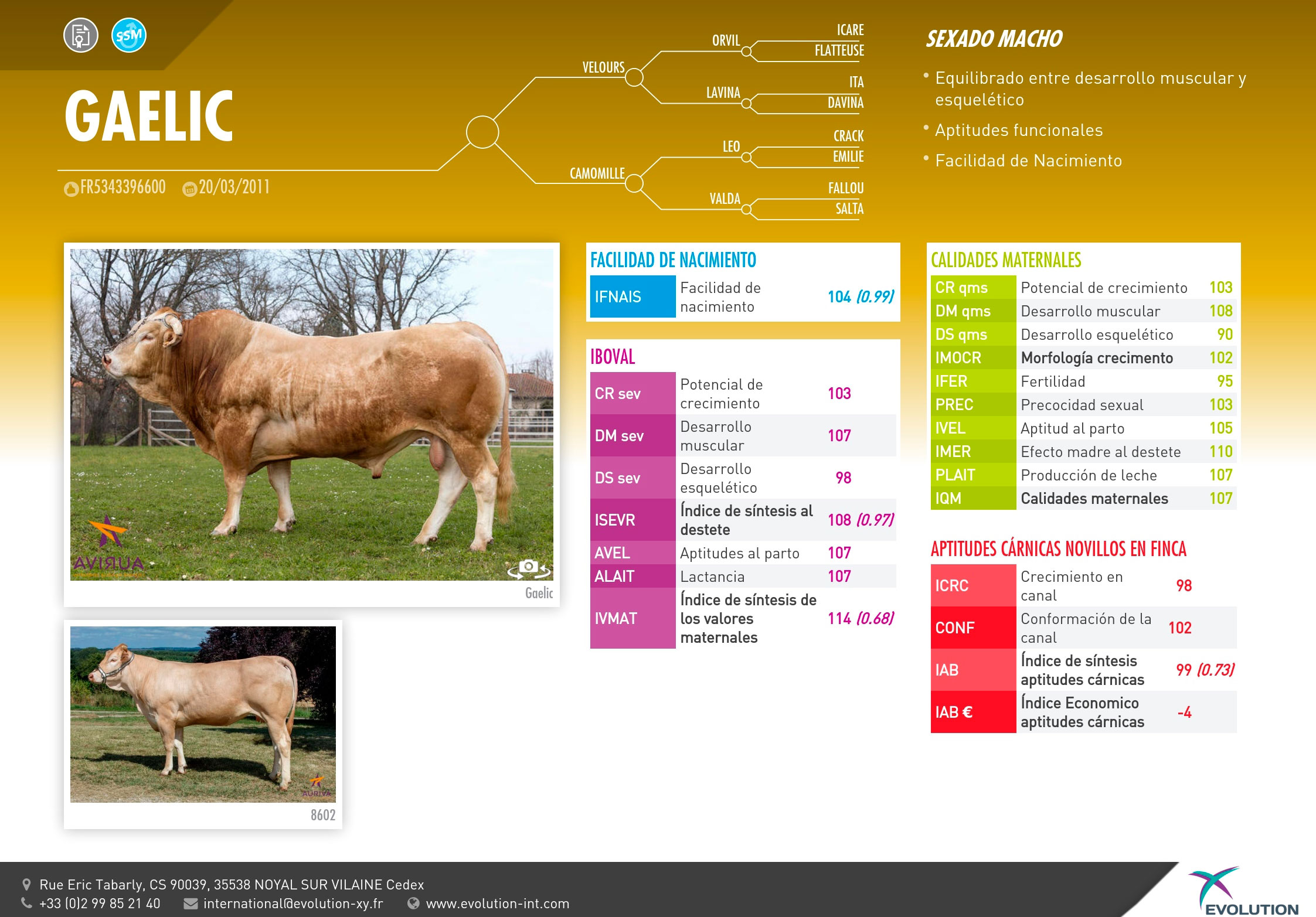 PADRE: VELOURS ABUELO MATERNO: CAMOMILLE RAZA: BLONDE D´AQUITAINE RECOMENDACIÓN: CRUZAMIENTO