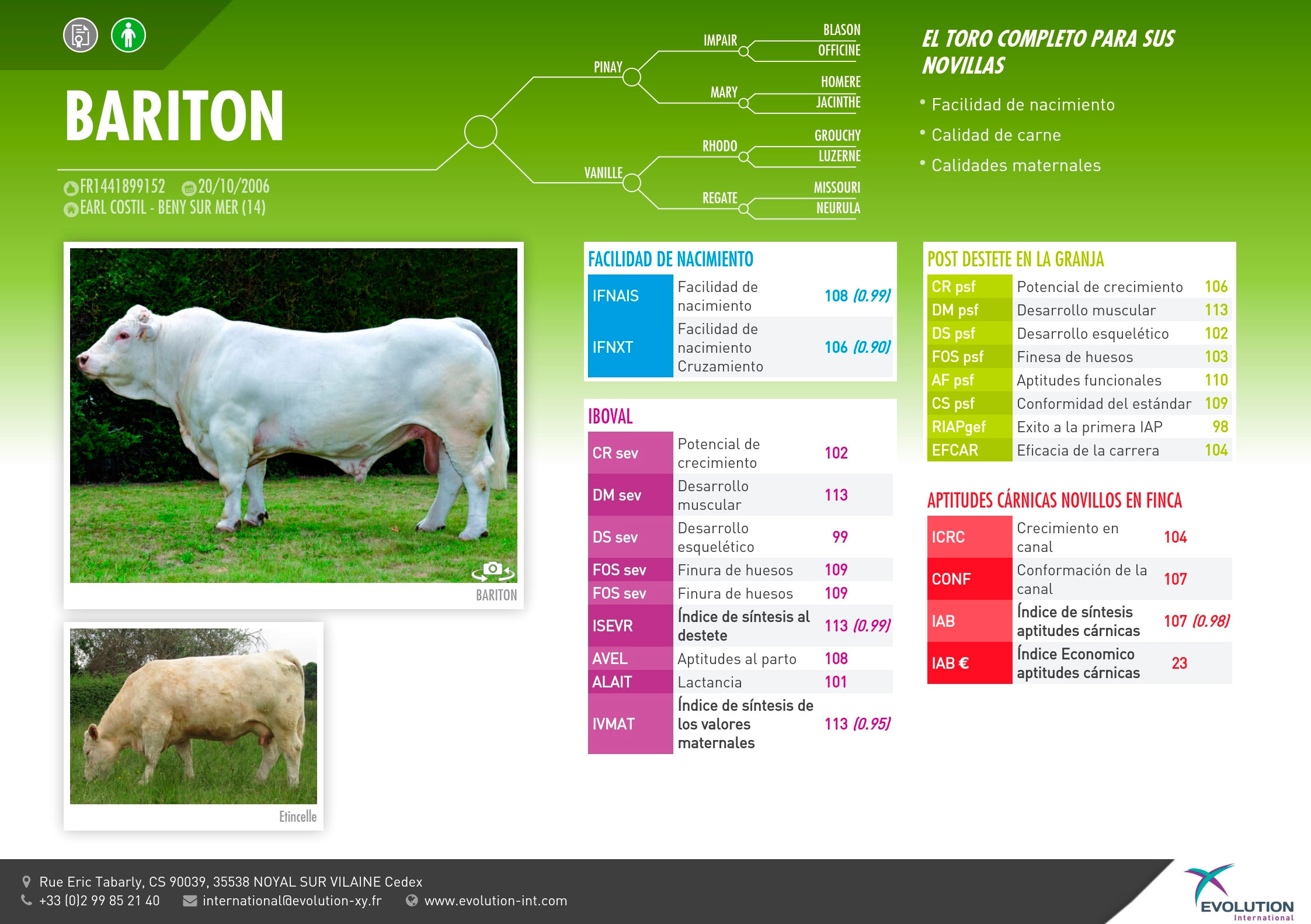 PADRE: PINAYABUELO MATERNO: VANILLE RAZA: CHAROLAIS RECOMENDACIÓN: CRUZAMIENTO